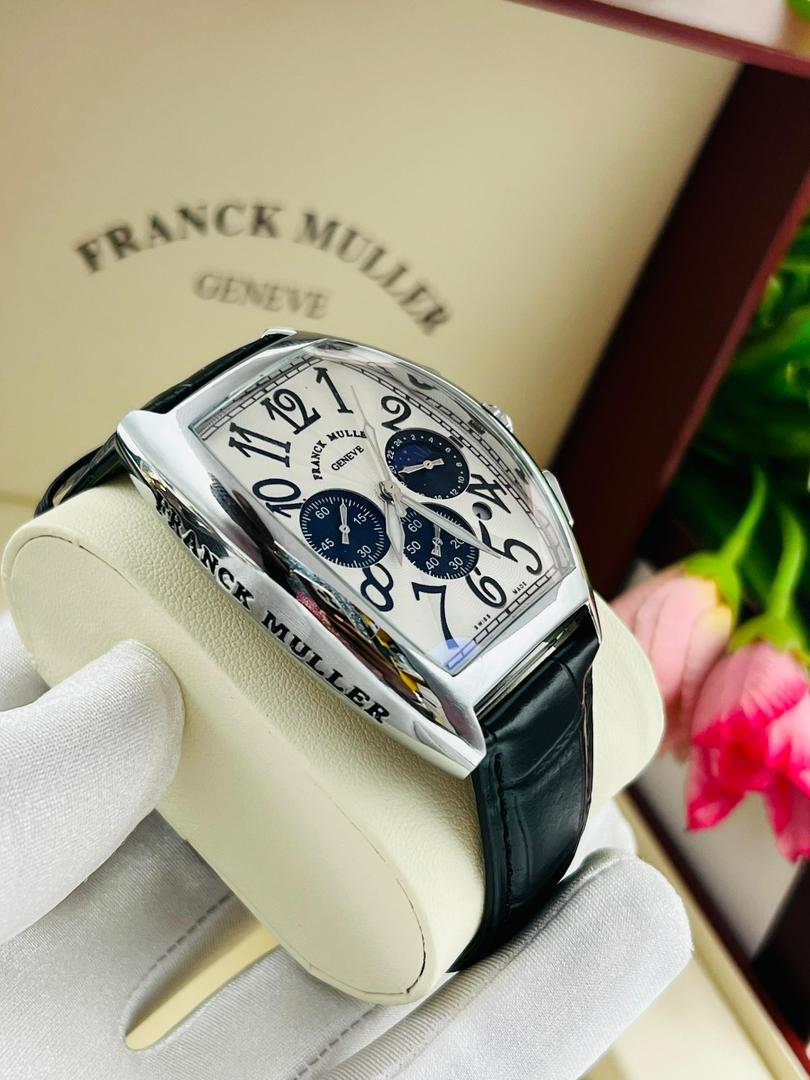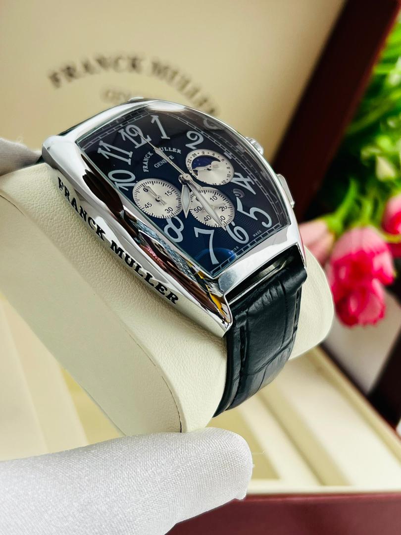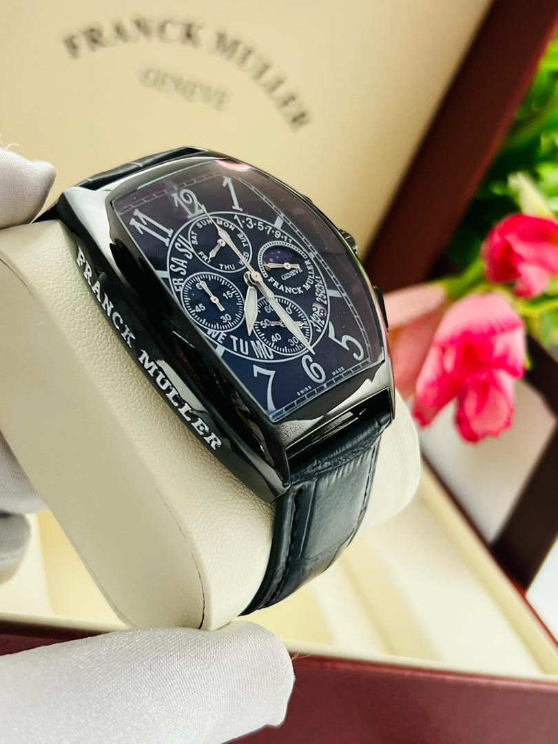 The FRANCK MULLER WATCH is a graded design watch with a high level of waterproofing that supports swimming and bathing. It has an Analog time display, Mechanical Movement, Dates and Calendar and Working Chronographs. The strap is made from top quality scratch proof and a Quality Leather. It has a back LED light for night view.