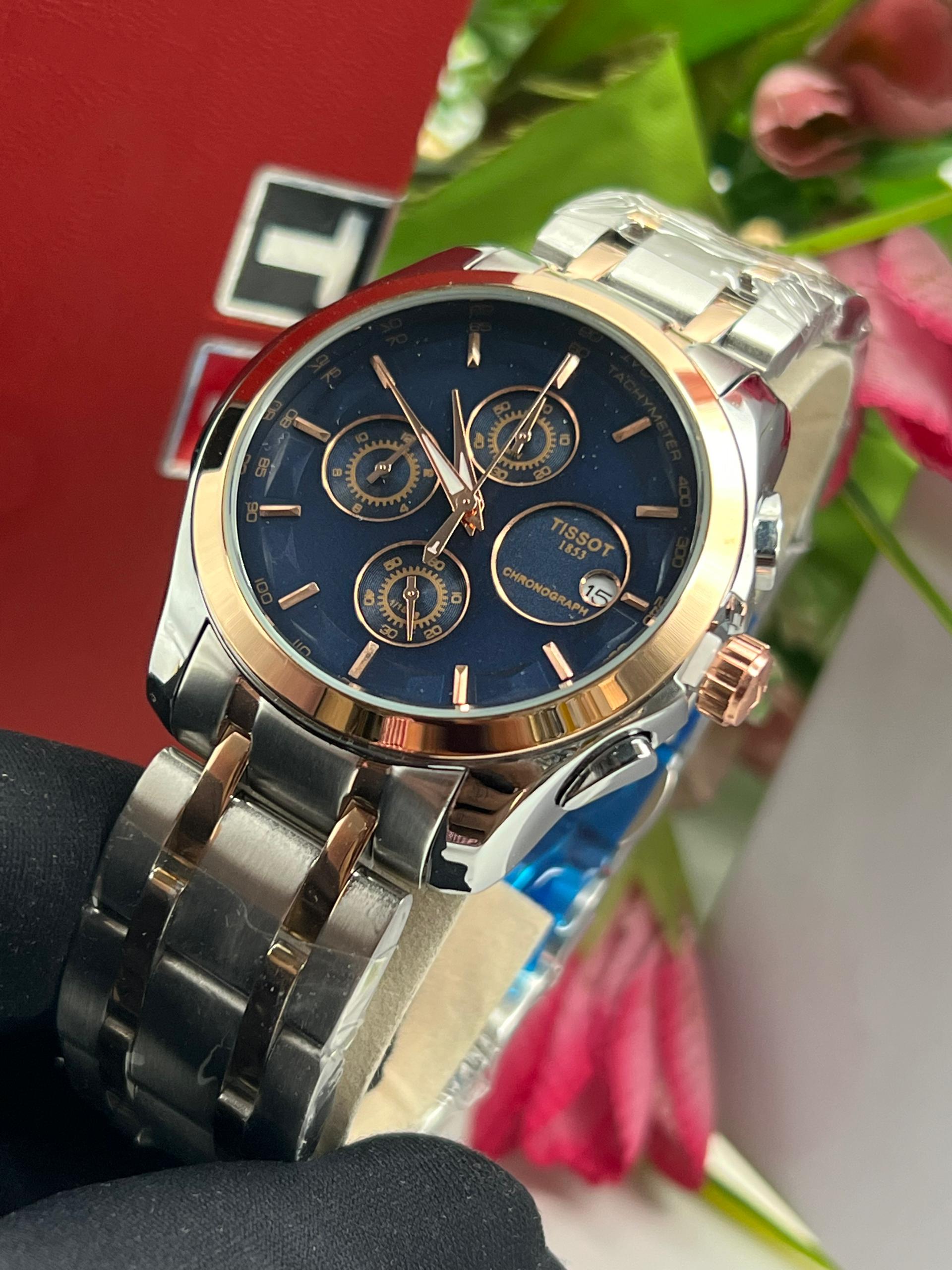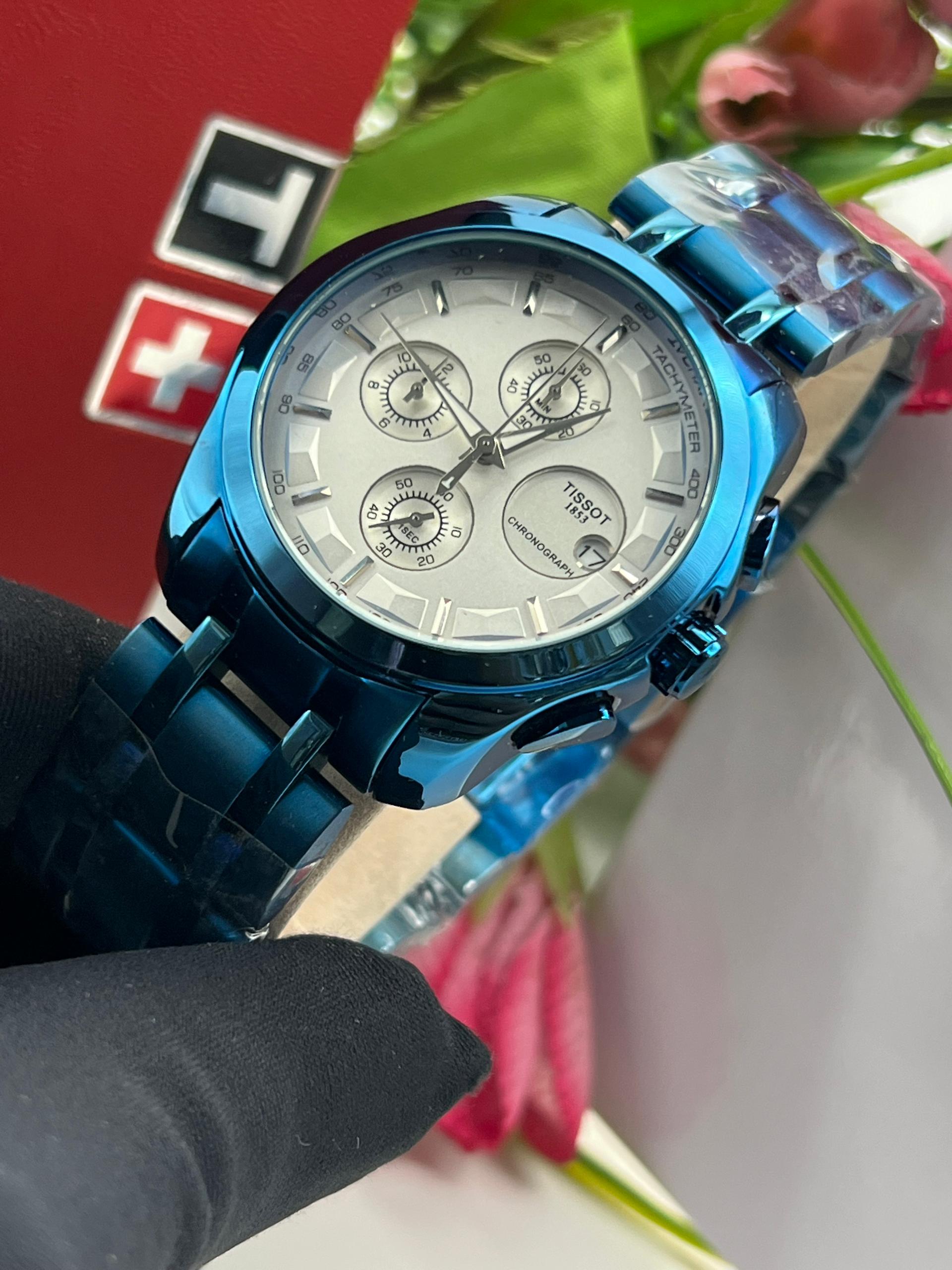 The TISSOT 1853 WATCH is a graded design watch with a high level of waterproofing that supports swimming and bathing. It has an Analog time display, Dates and Calendar and Working Chronographs. The strap is made from top quality scratch proof and a Quality Steel Chain.